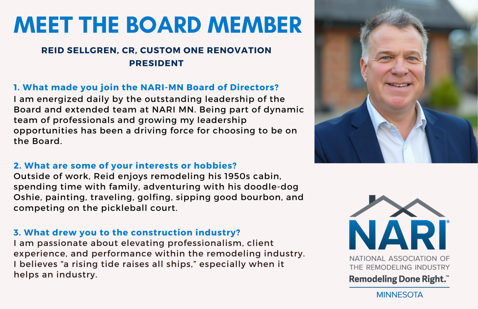 Meet the Board Member - Reid Sellgren, CR, Custom One Renovation