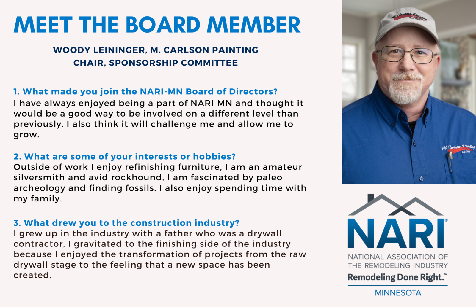 Meet the Board Member - Woody Leininger, M Carlson Painting