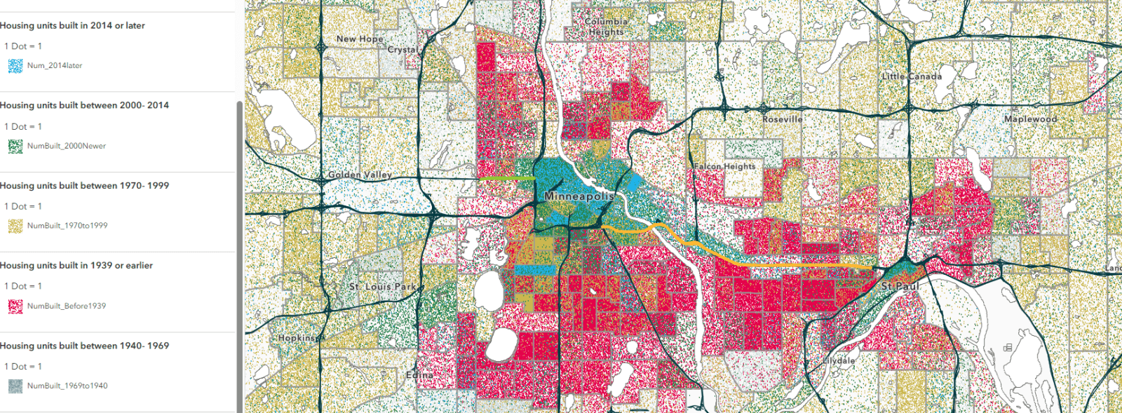 Here is the graphic (red dots represent homes built in 1939 or earlier):